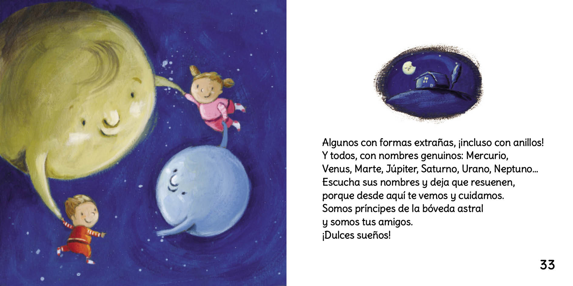 La Luna, las estrellas, el Cielo, la Oscuridad… los protagonistas de la noche enseñan a los niños cómo velan sus sueños. No hay nada de que preocuparse. ¡A dormir a pierna suelta! Y buenas noches.