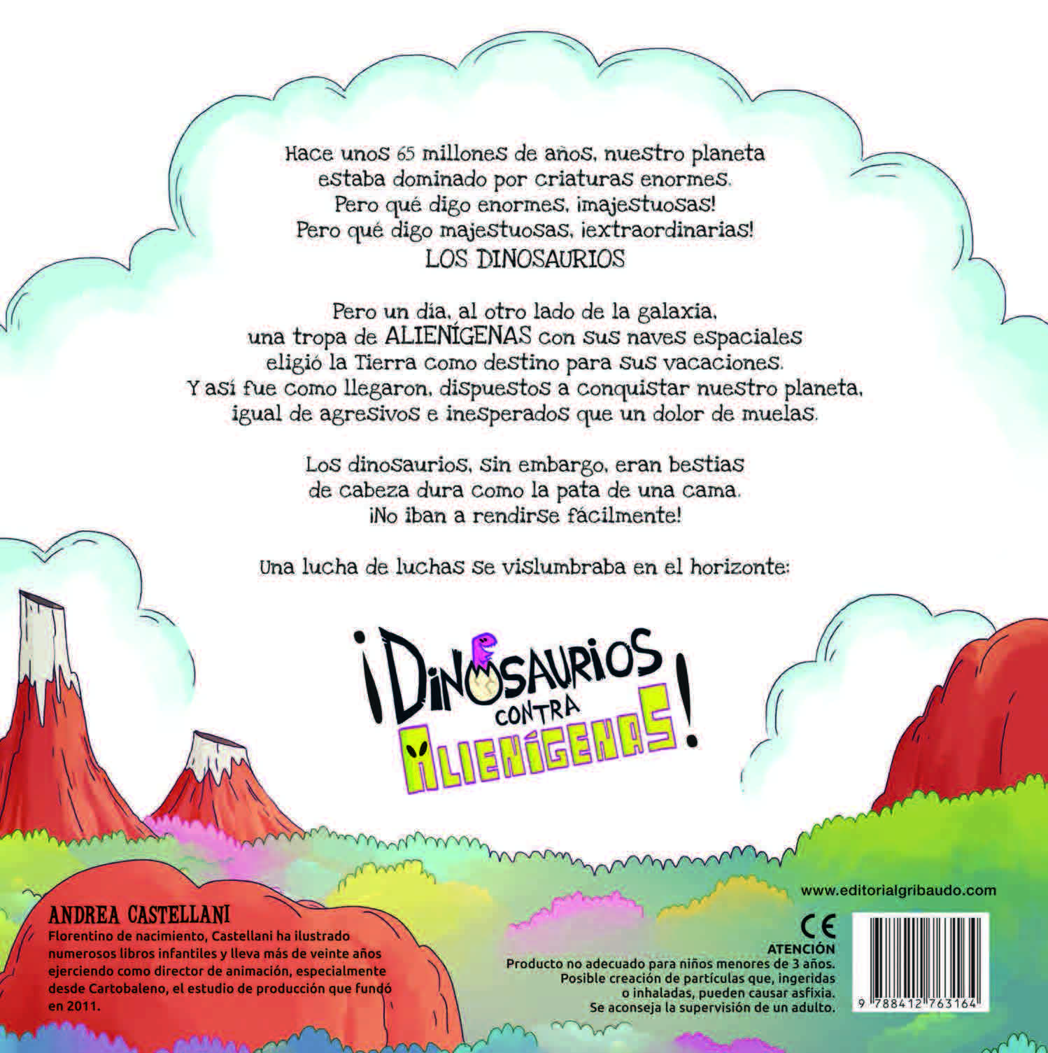 Hace millones de años, nuestro planeta estaba dominado por criaturas enormes, majestuosas, ¡extraordinarias! LOS DINOSAURIOS. Pero un día, al otro lado de la galaxia, una tropa de ALIENÍGENAS con sus naves espaciales eligió la Tierra como destino para sus vacaciones. Una lucha de luchas se vislumbraba en el horizonte, ¿quién ganará? Andrea Castellani, que ya nos hizo reír con Piratas contra vikingos, vuelve al ataque con una batalla ¡casi más desternillante que la anterior!