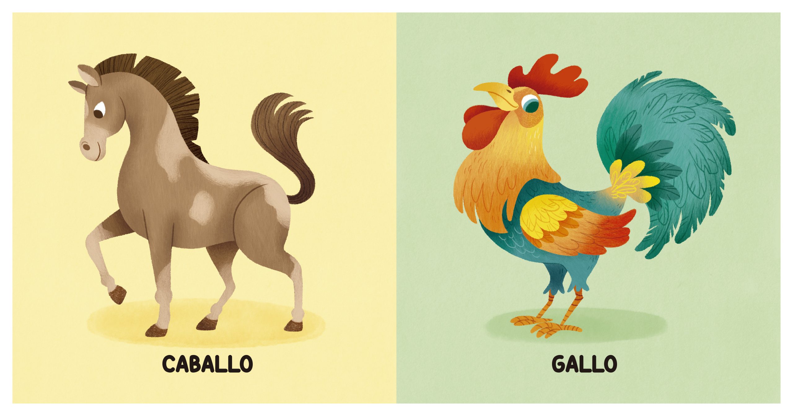 Una cabra, una oveja, un perro, un gallo… Este es un libro recomendado para bebés a partir de 10 meses en el que cada página de cartón duro es a la vez imagen y palabra. Una excelente herramienta para que los más pequeños comiencen a familiarizarse con el lenguaje y descubran sus primeros 50 animalitos.